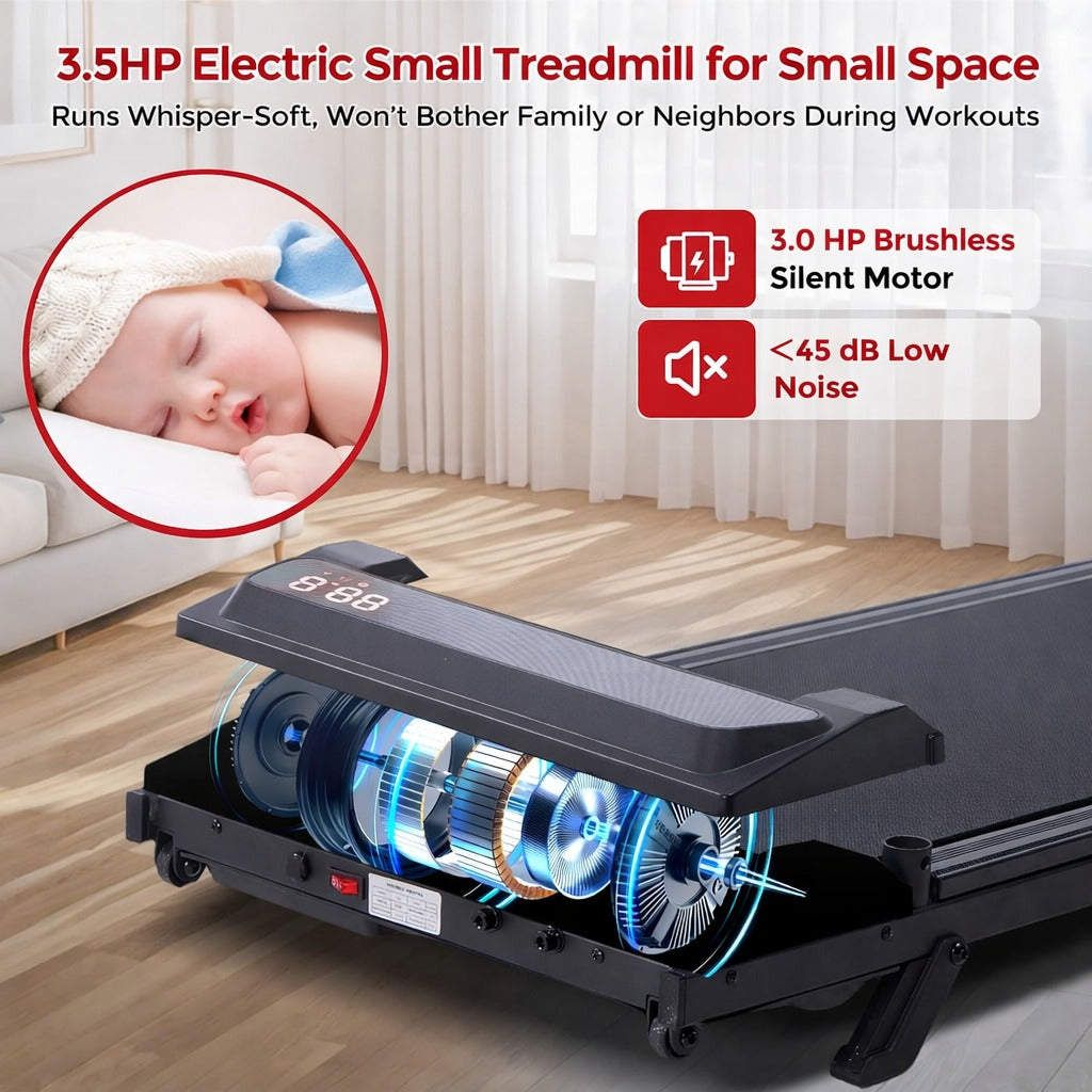 The BestGod treadmill is designed for ultimate home convenience π‘. Featuring 2 smooth-rolling wheels π, you can easily move it from bedroom to living room and work out anywhere πββοΈ. With a slim 3.5-inch profile,it slides effortlessly under the bed ποΈ or into tight spaces, making it ideal for Apartments and multi-purpose rooms.